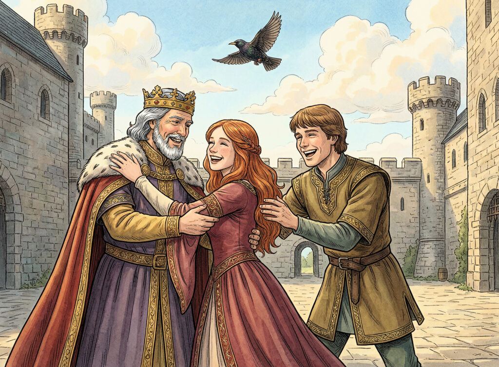 In the end, Branwen returned to Wales with her brother’s companions. She had shown great courage and hope, even when times were hard. Her story reminds us that love, strength, and kindness matter most, even when life changes in unexpected ways.