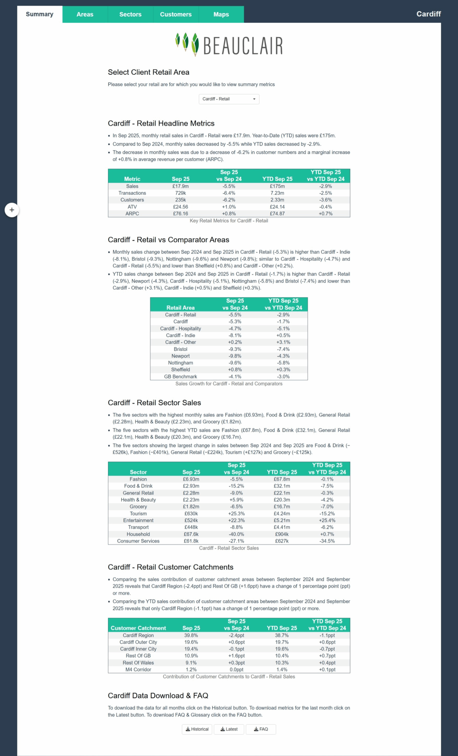 The Data below provided by our partners Beauclair provides insight into spending in Cardiff and other comparable areas.